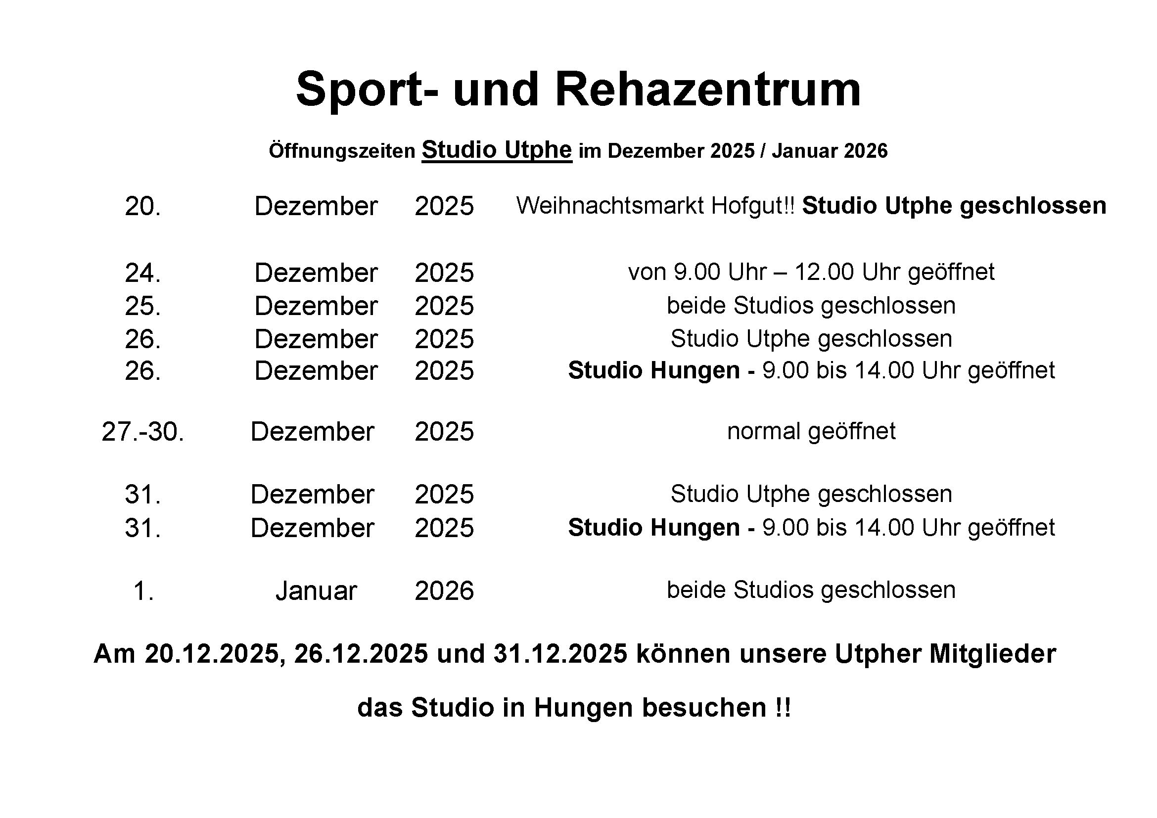Willkommen im Sport- und Rehazentrum Hungen-Utphe!